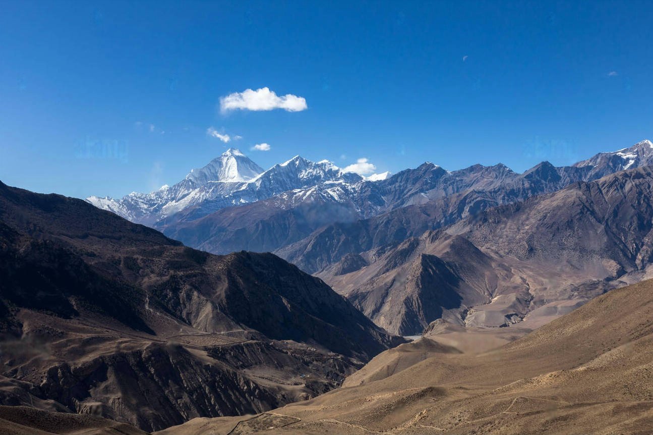 Continue trekking downstream for 5-6 hours through the dramatic Kali Gandaki gorge. The trail passes between the towering peaks of Dhaulagiri and Annapurna, which rise more than 7,000 meters above the valley floor, creating the world's deepest gorge. As you move south, the arid landscape gradually gives way to more vegetation. Reach Kalopani by afternoon, a pleasant village offering spectacular views of Dhaulagiri, Nilgiri, and Annapurna I, particularly magnificent at sunset and sunrise. Accommodation: Teahouse in Kalopani.