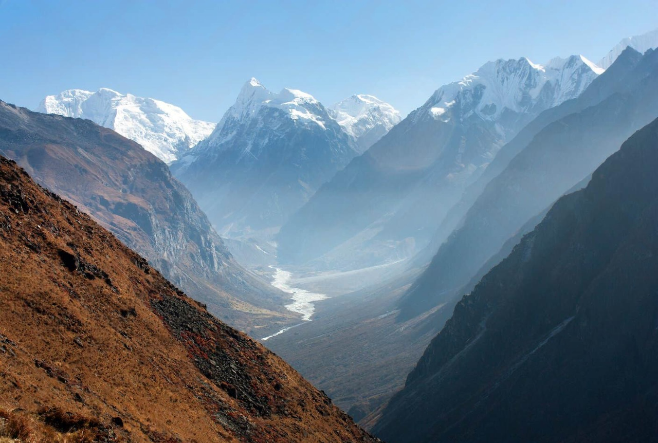 As you ascend from the subtropical forests of the lower valley through bamboo groves and into the alpine terrain, the landscape transforms dramatically with each day. The narrow valley gradually opens into a spectacular U-shaped glacial valley, creating a sense of revelation as the towering peaks of the Langtang range come into full view. The trail follows the Langtang Khola (river), crossing numerous wooden bridges and passing through forests filled with monkeys, colorful birds, and in springtime, brilliant rhododendron blooms.