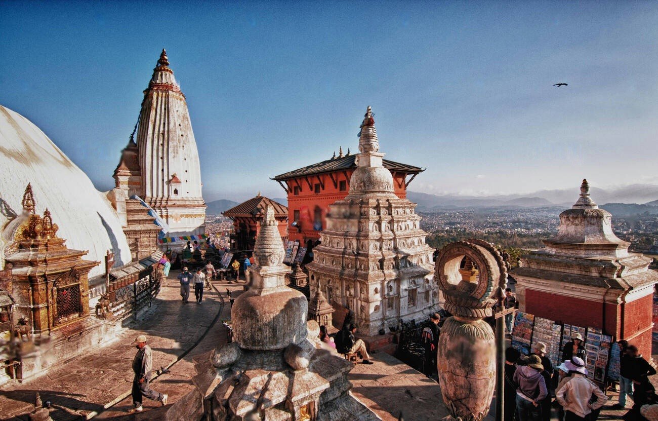 The sensory experience is equally compelling—the air is perfumed with juniper incense and butter lamps, prayer flags snap in the wind, bronze bells ring out with each spin of the prayer wheels, and the melodic chanting of mantras creates a meditative soundscape. The visual panorama extends from intricate religious art to the breathtaking views of the Kathmandu Valley stretching to the Himalayan peaks on clear days.